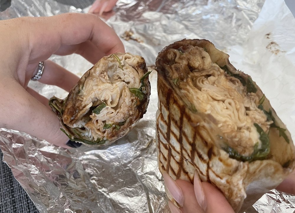 Grilled Chicken, Mozzarella, Roasted red pepper, Arugula & Basil Pesto.