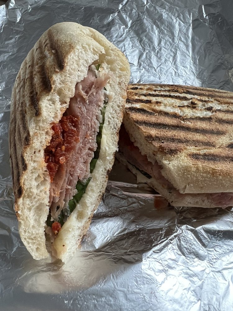 Turkey Panini with Fontina cheese, Bacon, Avocado & Creamy Basil Dressing